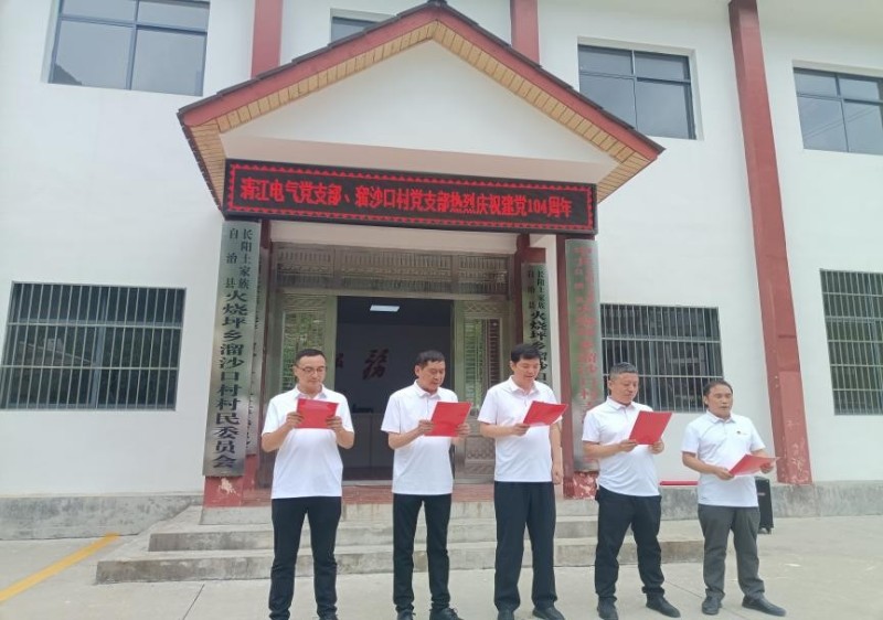 2025年6月23日,宜昌清江電氣有限公司領導班子成員、全體黨員、入黨積極分子赴火燒坪鄉溜沙口村,熱烈慶祝中國共產黨104歲生日;“村企共建”助力最美鄉村建設。